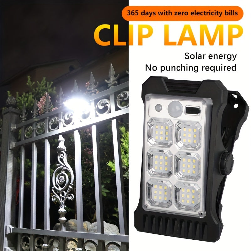 Luz Solar Verstil com Clipe  Sensor de Movimento Alimentada por USB e Solar para Jardim Ptio  Camping