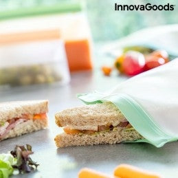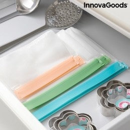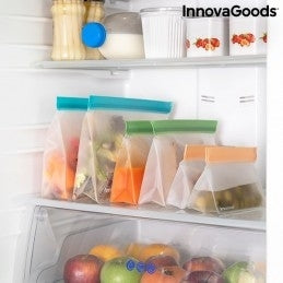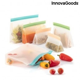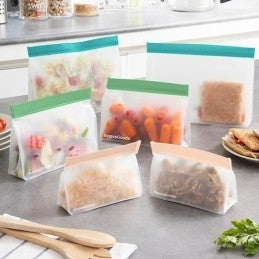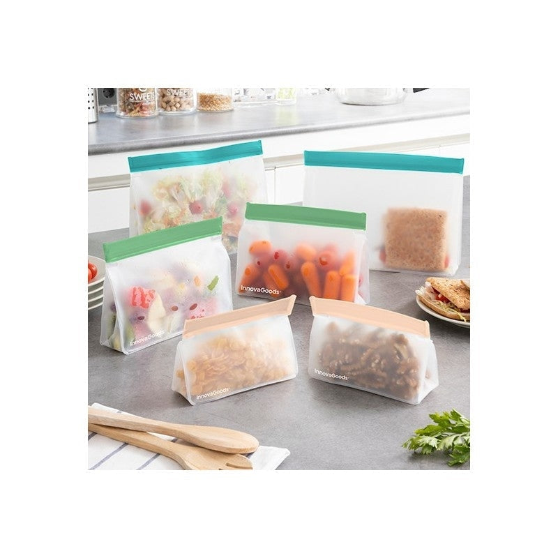 Um conjunto de 6 sacos reutilizáveis com fecho hermético para transportar alimentos ou guardá-los no frigorífico ou no congelador (até mesmo líquidos).