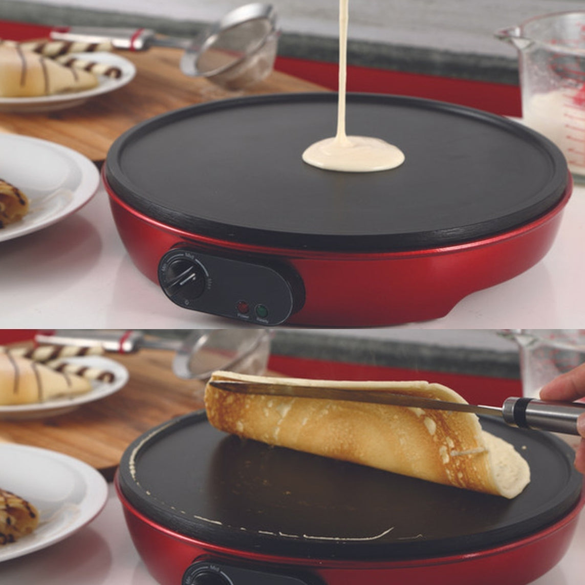 O Crepe é uma comida muito versátil e esta máquina elétrica foi projetada com um revestimento anti-aderente que impede que as crostas se formem na superfície na placa, facilitando a remoção do crepe. Também facilita o simples virar e remover o crepe quando estiver pronto e não será quebrado ou compartilhado. Por sua vez, esse recurso garante uma limpeza fácil e ideal, para poder usá-lo para preparar tantos crepes seguidos conforme desejado.