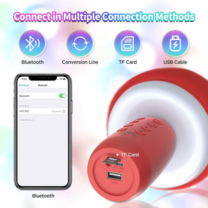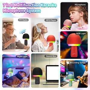 Multifunções: Além do karaoke, pode ser usada como rádio FM, luz noturna ou coluna Bluetooth portátil.