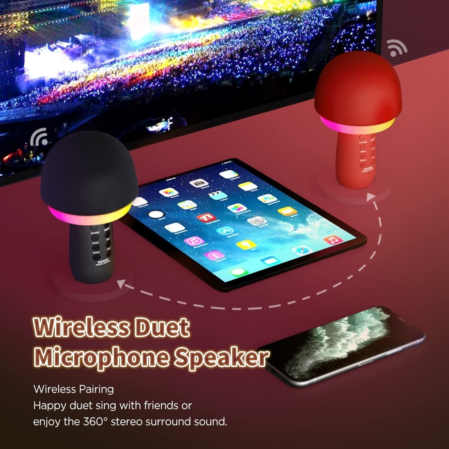 Leve a diversão do karaoke para qualquer lugar com a Mushroom Mic – Coluna Microfone Bluetooth! Com um design exclusivo em forma de cogumelo, som potente e efeitos luminosos RGB, esta coluna é perfeita para festas, eventos ou momentos de descontração em família.