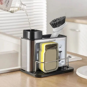 Présentation de notre brosse de cuisine avec brosse et distributeur, conçue pour faire du nettoyage de la vaisselle, des poêles et des ustensiles de cuisine une tâche rapide et efficace.