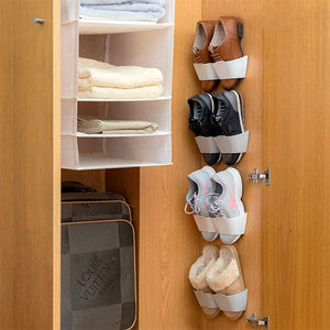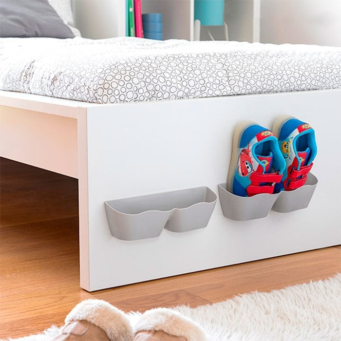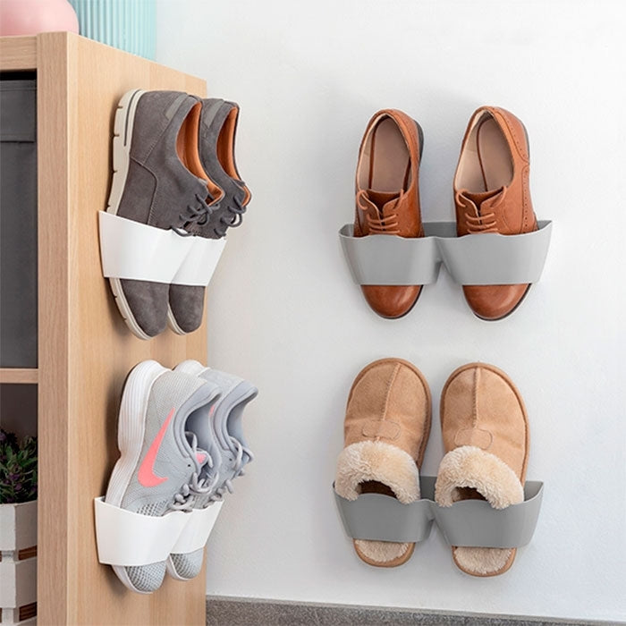 Os Suportes para Sapatos 4 Pares possuem adesivos resistentes incluídos, que podem ser facilmente colocados em paredes, portas, armários, etc.