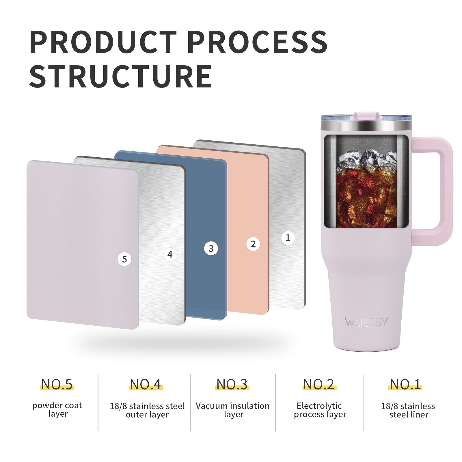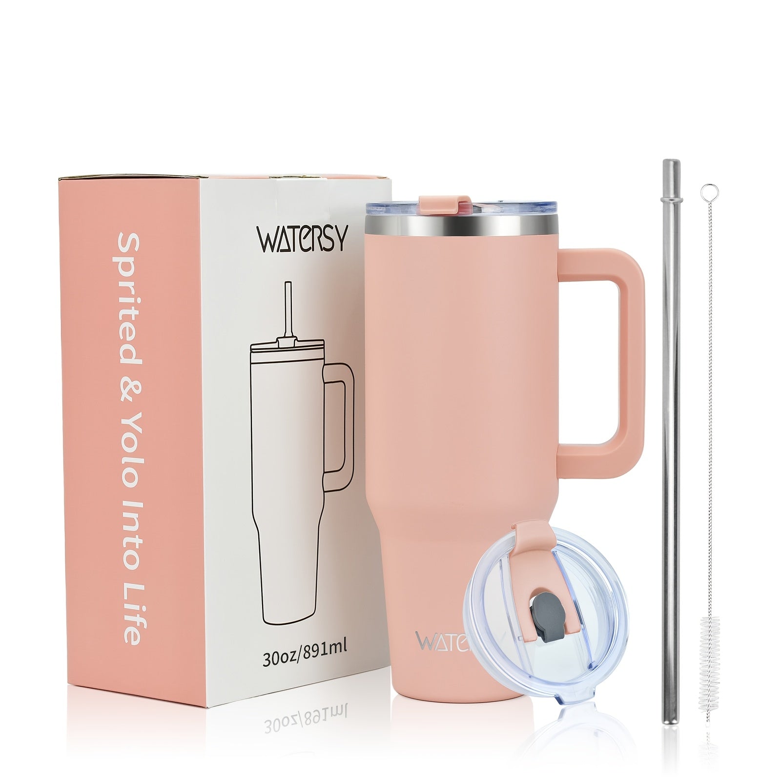 Aço inoxidável de alta qualidade com alça e canudo integrados – fácil de transportar e perfeito para o seu estilo de vida moderno. -