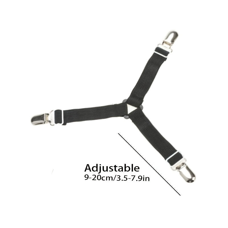 Descrição: Mantenha a sua colcha, sofá ou lençóis sempre no lugar com este Conjunto de 4 Fixadores Triangulares para Colcha. Feitos de metal durável e com design ajustável, esses fixadores elásticos são ideais para garantir que sua colcha ou lençóis permaneçam firmemente no lugar, proporcionando uma aparência limpa e organizada ao seu quarto ou sala de estar.
