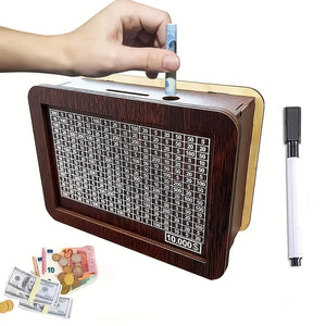 Descubra o charme do nosso Cofre de Madeira Reutilizável, fabricado em madeira bruta e pensado para incentivar a sua poupança. Com um contador de objetivos integrado, este cofre permite acompanhar o progresso das suas metas financeiras, tornando a economia uma experiência prática e motivadora.