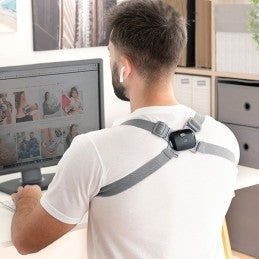 Um treinador de postura inteligente, com um design moderno, unissexo e de tamanho único, que alerta por vibração para corrigir a sua postura quando esta se desviar mais de 25º da posição vertical adequada.