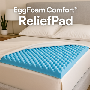 O EggFoam Comfort™ ReliefPad é uma camada ortopédica de alta performance com tecnologia de perfilamento em "caixa de ovos" (egg foam), desenvolvida para proporcionar alívio imediato de pressão e máximo conforto durante o sono. Fabricado em Portugal com espuma HR de densidade premium 35kg/m³.