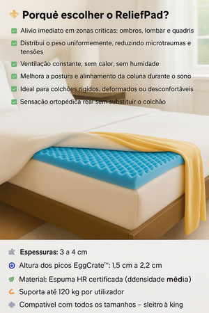 EggFoam Comfort™ ReliefPad – Transforme o Seu Colchão Num Sistema Ortopédico Profissional