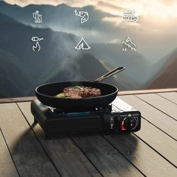 Este fogão a gás portátil é uma solução prática e eficiente para cozinhar em diversos ambientes, seja durante atividades ao ar livre como campismo, churrascos, piqueniques, ou até mesmo em situações de emergência. Compacto e fácil de usar, é um utensílio essencial para quem gosta de estar preparado para qualquer situação.