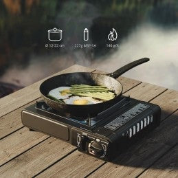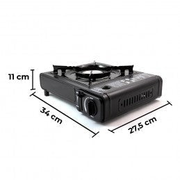 - Portabilidade: Compacto e leve, o fogão vem com uma caixa de transporte em plástico resistente, facilitando o armazenamento e o transporte.