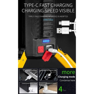 Rotação de Luz a 180°: Adapte a direção da luz conforme necessário, proporcionando flexibilidade e cobertura em todas as direções.Carregamento USB: Recarregue facilmente a lanterna com o cabo USB incluído, garantindo que esteja sempre pronta para a próxima aventura.