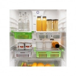 Um conjunto de 2 caixas de arrumação ajustáveis, que permitem otimizar o espaço disponível e manter a ordem dentro do frigorífico.