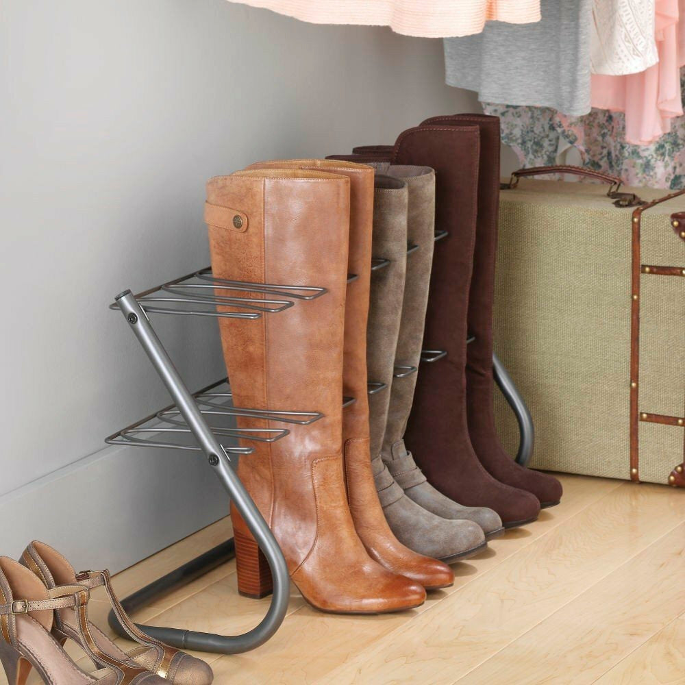 Este sapateiro organizador para botas é perfeito para manter suas botas em ordem e em bom estado. Com capacidade para até 4 pares de botas, ele mantém a parte de cima das botas na vertical, evitando vincos e mantendo-as sempre bonitas e niveladas. Feito de aço durável, este organizador foi projetado para ter uma longa vida útil. É ideal para ser usado em vestiários, corredores e até mesmo em armários com espaço limitado.