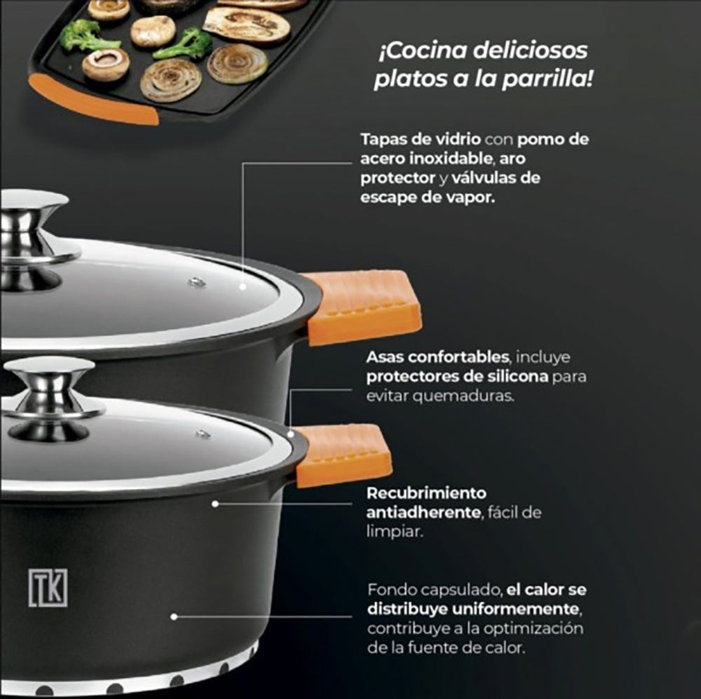 - Materiais de Alta Qualidade: Fabricada em alumínio fundido, esta bateria de cozinha é leve e durável, facilitando o manuseio e garantindo uma longa vida útil.