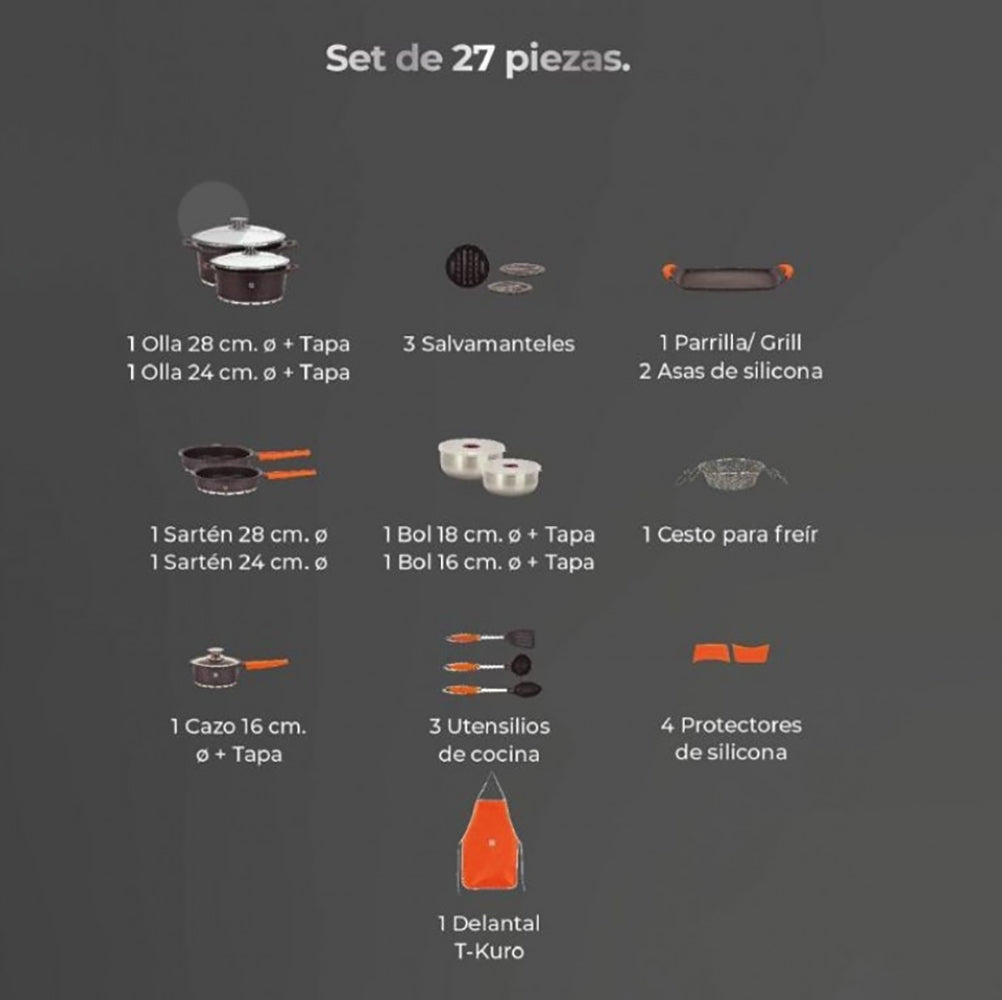 Com este conjunto de utensílios de cozinha de 27 peças, terá à sua disposição todas as ferramentas necessárias para preparar refeições deliciosas de forma eficiente e saudável. O seu design moderno, aliado a materiais de alta qualidade, garante não só resultados perfeitos na cozinha, mas também a segurança e a durabilidade que procura num conjunto de cozinha.